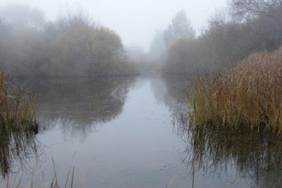 O rio Xévora numa tarde de Dezembro com nevoeiro.
